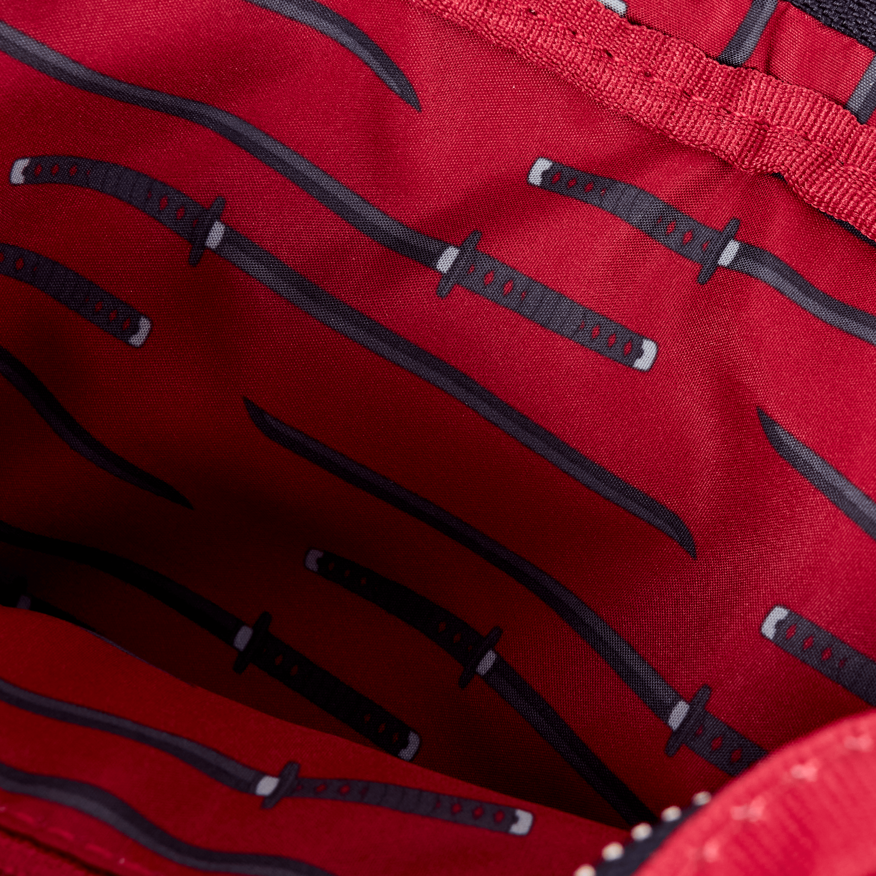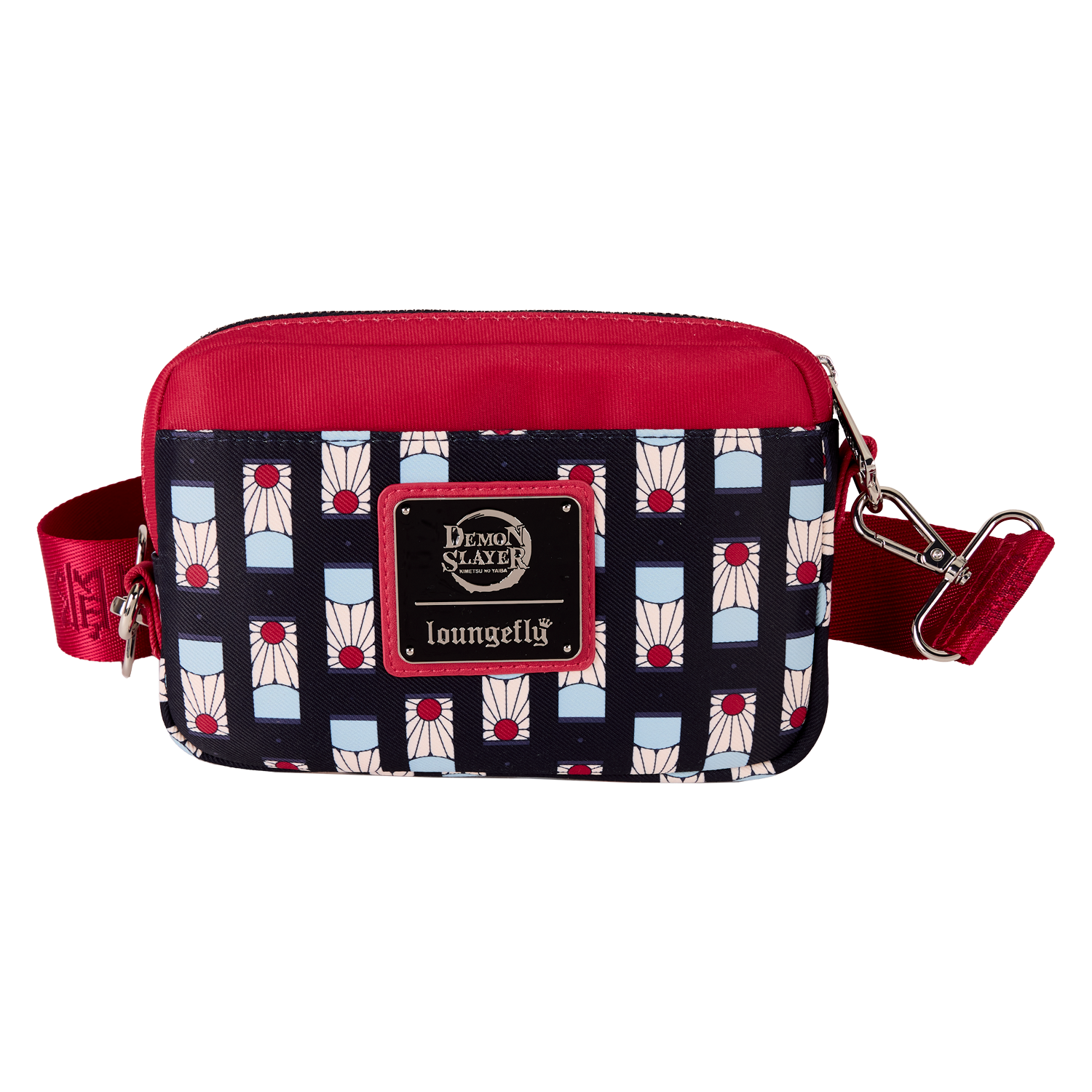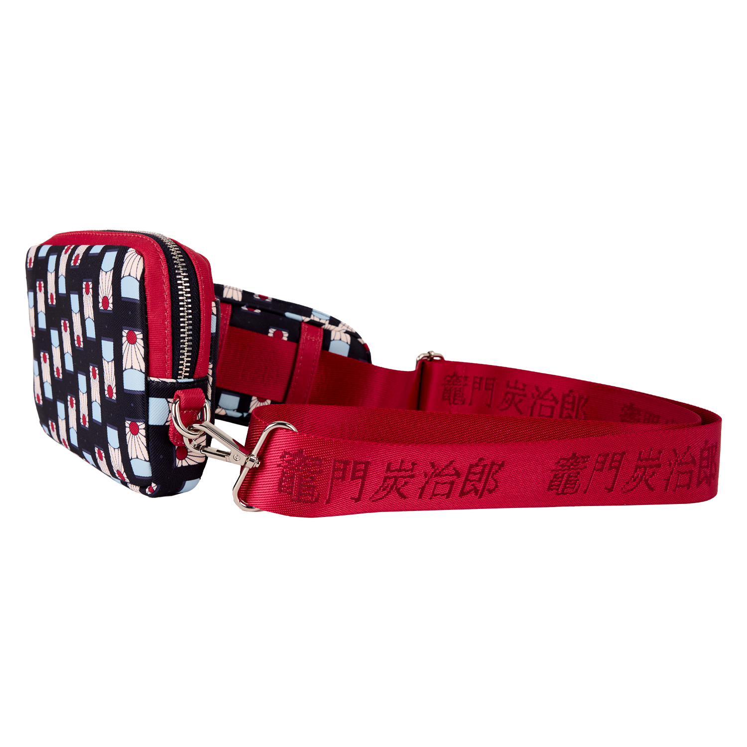 This sling bag features an all-over print of Tanjiro’s earrings. It zips closed to keep your essentials secure. Attached to the crossbody strap is a coin bag to hold smaller items.