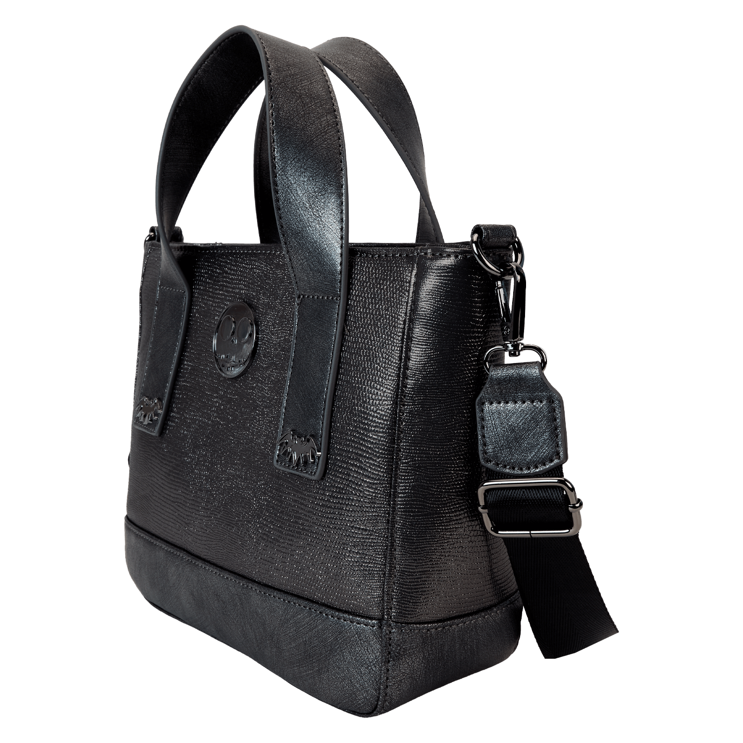The real nightmares are the ones that blend in every day. Embrace your thrilling lifestyle with a mini tote bag that shows your love for Halloween Town year-round. With molded metal details and a muted textured design, you can rock your fandom while staying in the shadows.