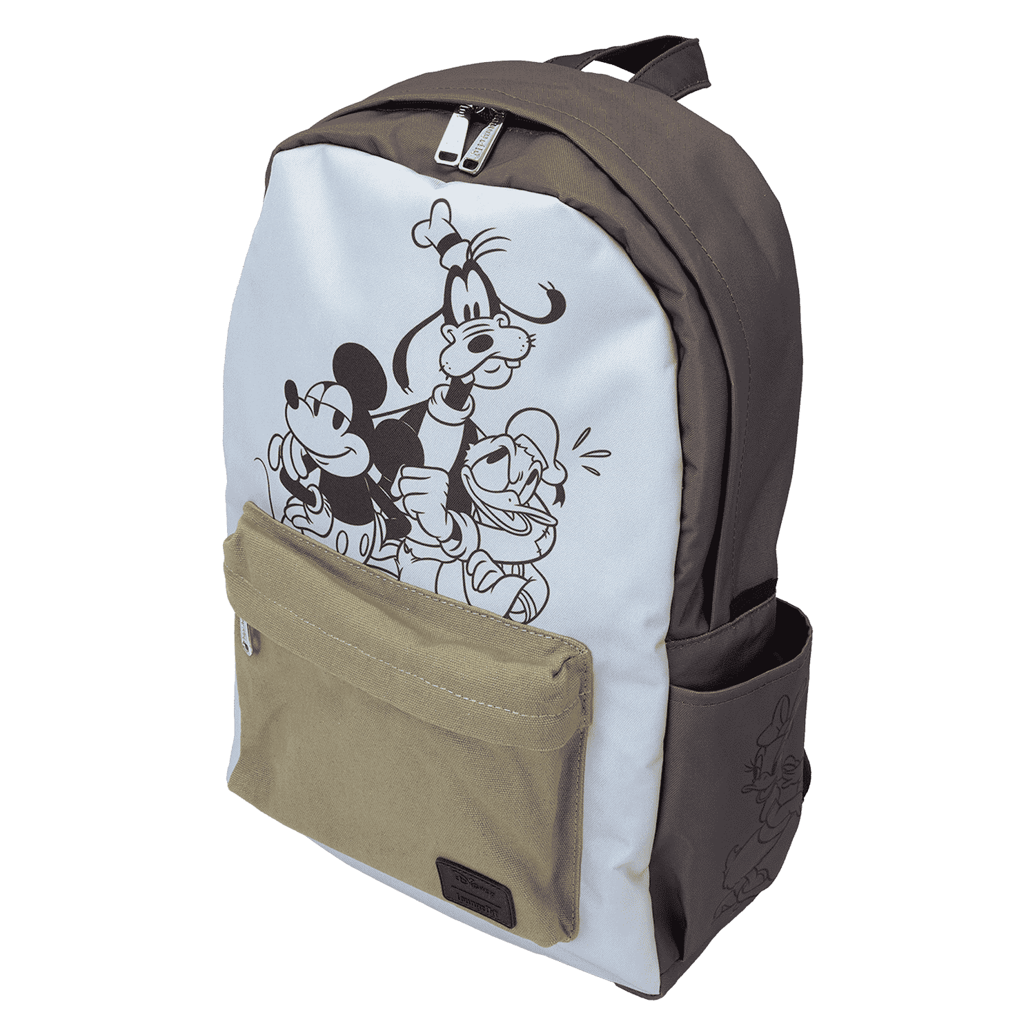 Take those best pal vibes with you wherever you go. This full-size backpack of Disney¡¯s Mickey Mouse and Friends sure is swell! The front features a canvas zipper pocket, and Disney¡¯s Mickey Mouse, Goofy, and Donald Duck appear as a classic print just above. The side pockets feature Disney¡¯s Minnie Mouse and Daisy Duck, and on the back, you¡¯ll find a charming print of Disney¡¯s Pluto. There¡¯s plenty of room to store just what you need to set off on fun adventures in style.