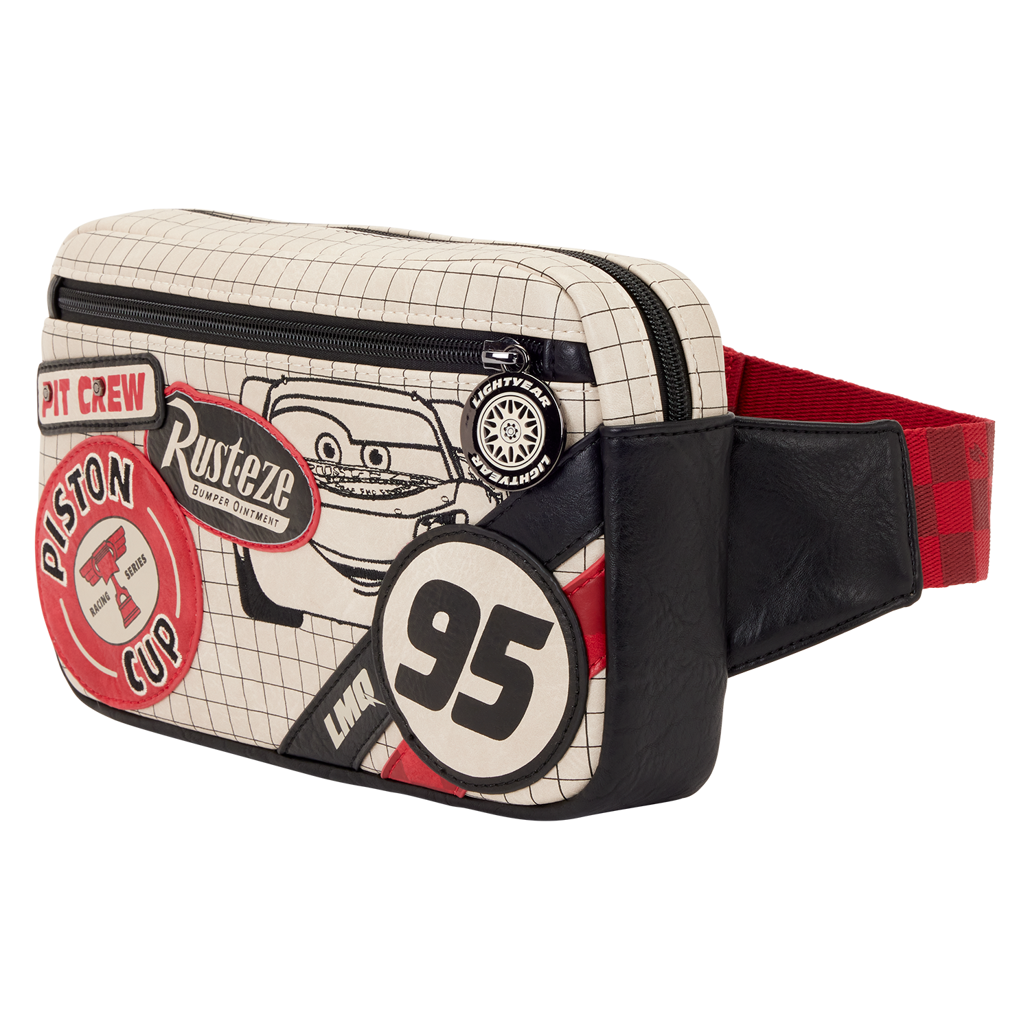 This sling bag features weathered faux leather, molded metal studs, and embroidered details that look like stickers on the front. You’ll find “stickers” that say, “Pit Crew,” “Rust-eze,” “Piston Cup,” and more! This bag is a really fun accessory that’s both stylish and a great way to celebrate one of your favorite movies!