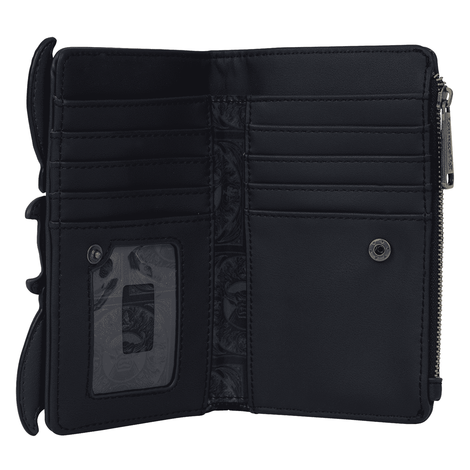 This wallet features Chernabog from the classic Disney film. You¡¯ll find him in applique form on the front, his horns and wings poking out over the top. Fire erupts from between his claws. Below him, you¡¯ll find Bald Mountain. The dark landscape illustration continues onto the back of the wallet.