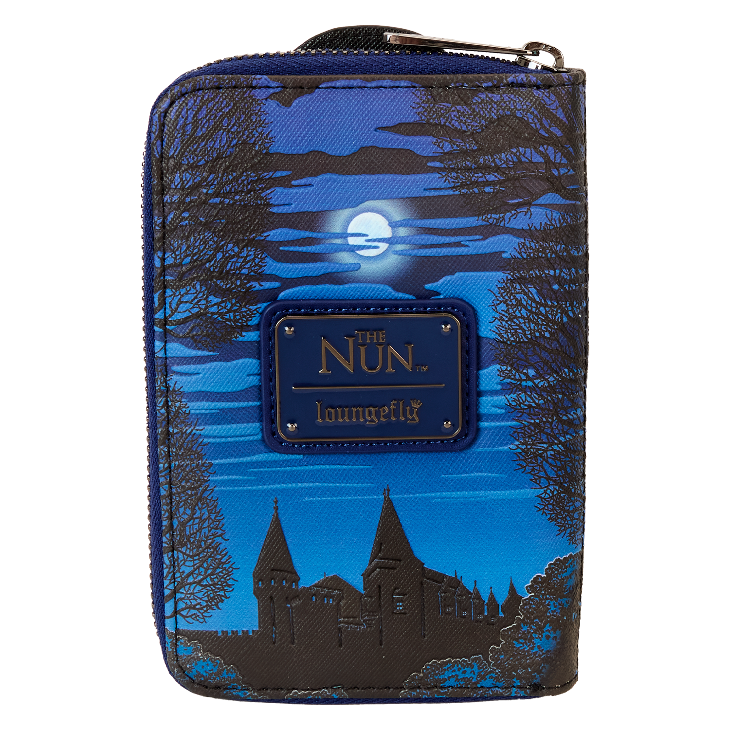 Venture through candlelit passageways and fog-covered haunts in style. This wallet, featuring The Nun, is truly a vision. Eerie printed details of an apparition of The Nun materialize on the front. In the dark, parts of her face and habit glow! On the back, you’ll find original, detailed artwork of the monastery in moonlight, shrouded by trees. Secure your valuables for a fashionably spirited adventure.
