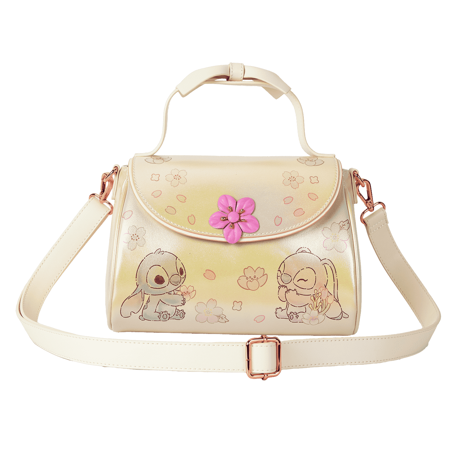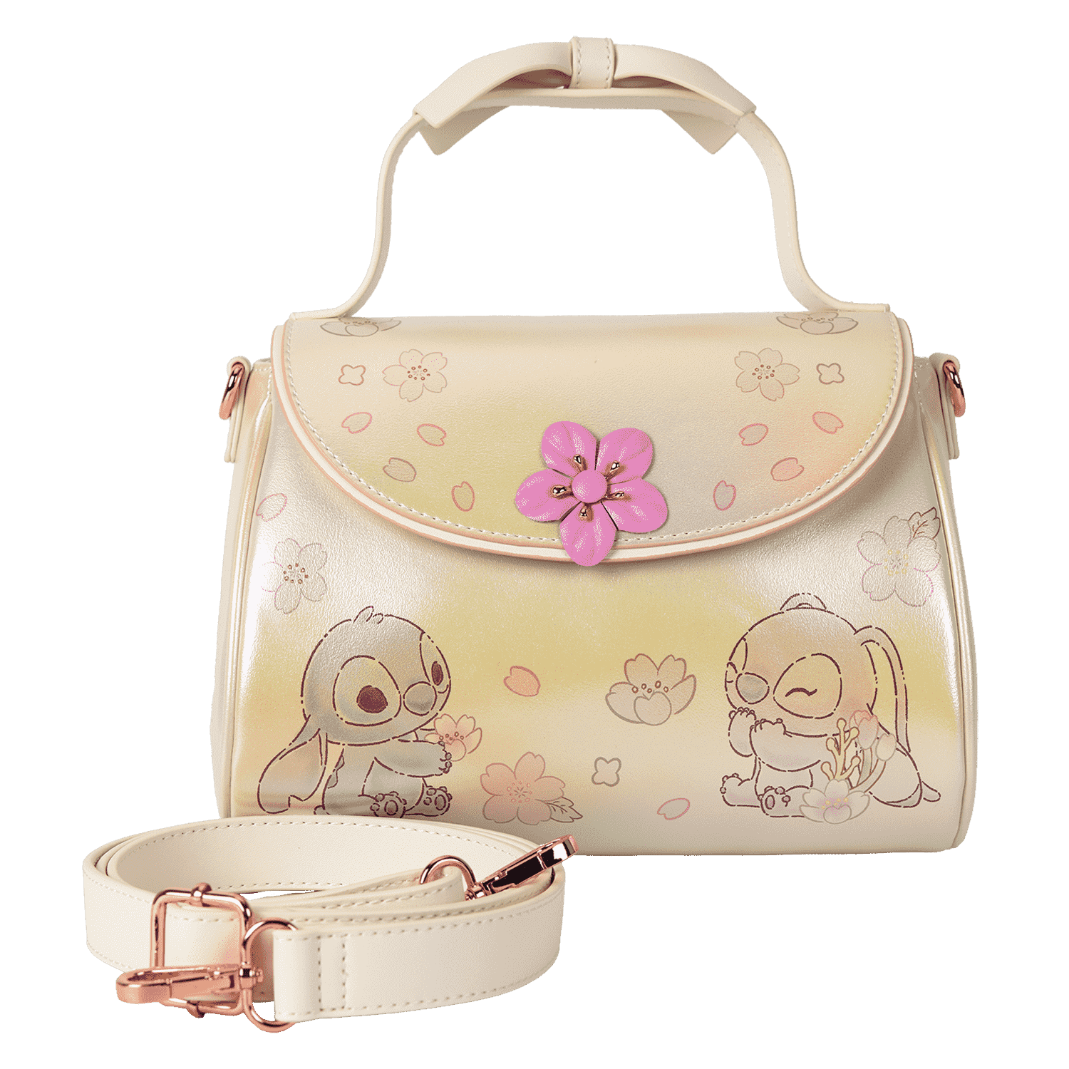 Keep your best boojiboos forever (BBFs) close with a fashionable flair. Take along this Disney’s Stitch and Angel crossbody bag. Iridescent detail makes this accessory shimmer. On the front, a sweet moment between Stitch and Angel unfolds among the flowers. The 3D cherry blossom snap on the front adds a charming touch. There’s enough room for packing just what you need for a fun-filled day of enchanting adventures .