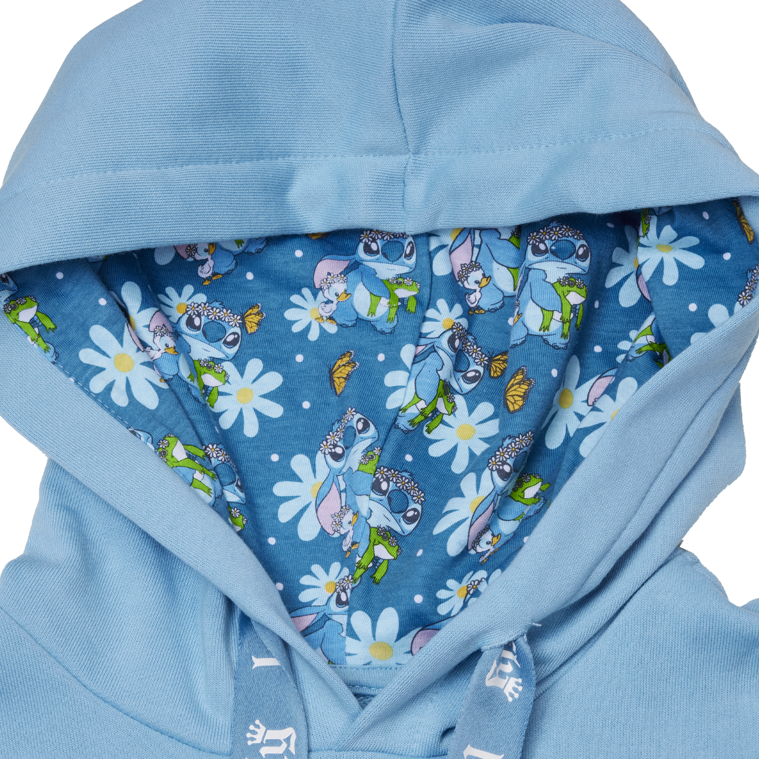 New beginnings are in bloom! Embrace a season of fresh starts with the Loungefly Lilo & Stitch Springtime Stitch Unisex Hoodie. On the front, Stitch takes shape on the hoodie’s pocket with figural details and applique ears that bring him to life. Up above, a group of ducklings wear flower crowns as they perch atop Stitch’s head. Look closely and you’ll find the ducklings and a frog hidden in the field of daisies covering each sleeve! Oversized lanyard-style drawcords cinch together the hood, which is lined in an all-over print of Stitch and his friends. This cute and cozy hoodie makes an adorable addition to any outfit and will keep you looking stylish on your next outing.